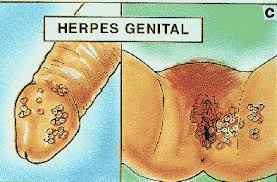 HERPES GENITAL: Produce una infección penetrando por una lastimadura microscópica de la piel y alojándose en el tejido nervioso. Luego reaparece en forma de ampollas dolorosas que estallan se convierten en pequeñas ulceraciones a nivel de los órganos sexuales externos (tanto en el hombre como en la mujer) Su mayor peligro radica en que permite el contagio de otras ETS mucho más peligrosas; Además es causa de infecciones graves en recién nacidos por lo cual (cuando la madre lo posee) se recurre a la cesaría. El herpes es causado por dos tipos de virus: virus herpéticos I y II. El virus I se asocia con la infección Llamada Labial (en la cual las lesiones aparecen por encima de la cintura) por oposición, las lesiones que provoca el II se hayan ubicados en la región de los genitales, nalgas y muslos (zona baja). Es una ETS que se desarrolla muy rápido y su principal síntoma son las ampollas; Además es una enfermedad recidivante (que reaparece) así que debe tratarse cada vez que se presenta con pomadas (que contengan INTERFERON o ACICLOVIR), también se suelen administrar comprimidos por vía oral (que contengan ACICLOVIR.